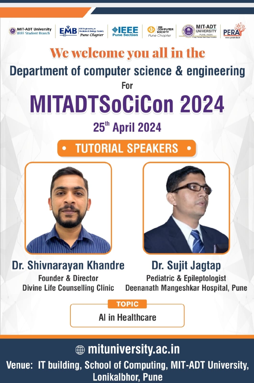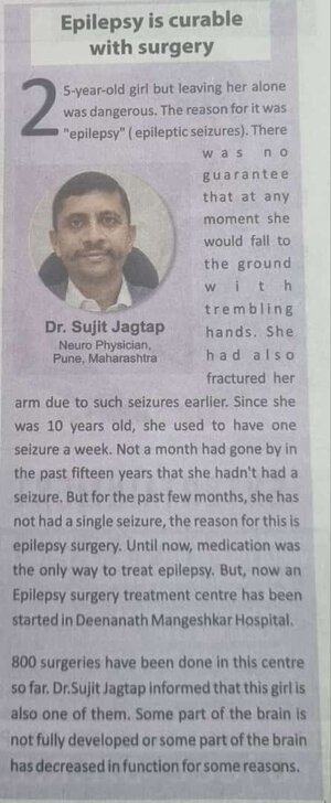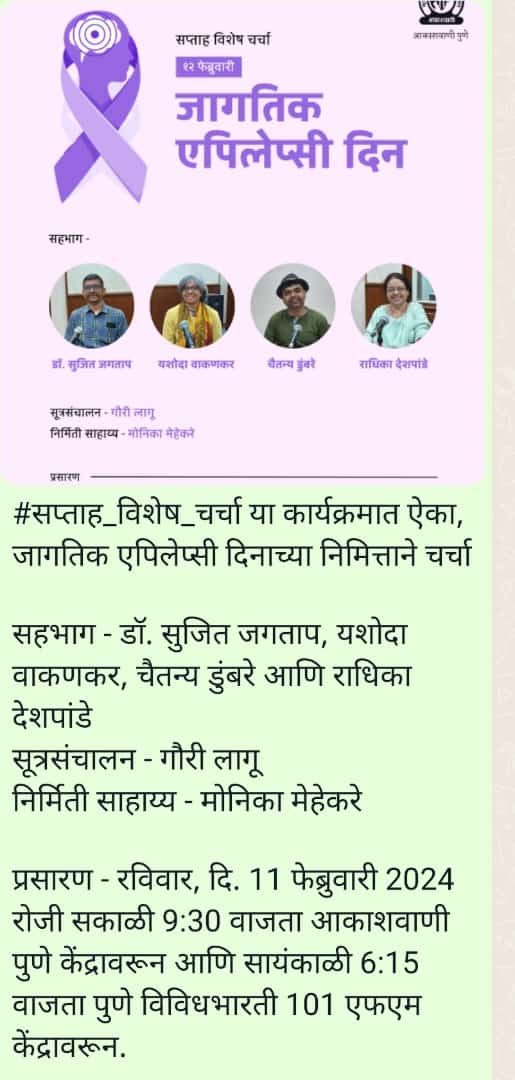 Dr Sujit Jagtap will be delivering a talk on Myths and Facts of Epilepsy at MIT College, Pune.
